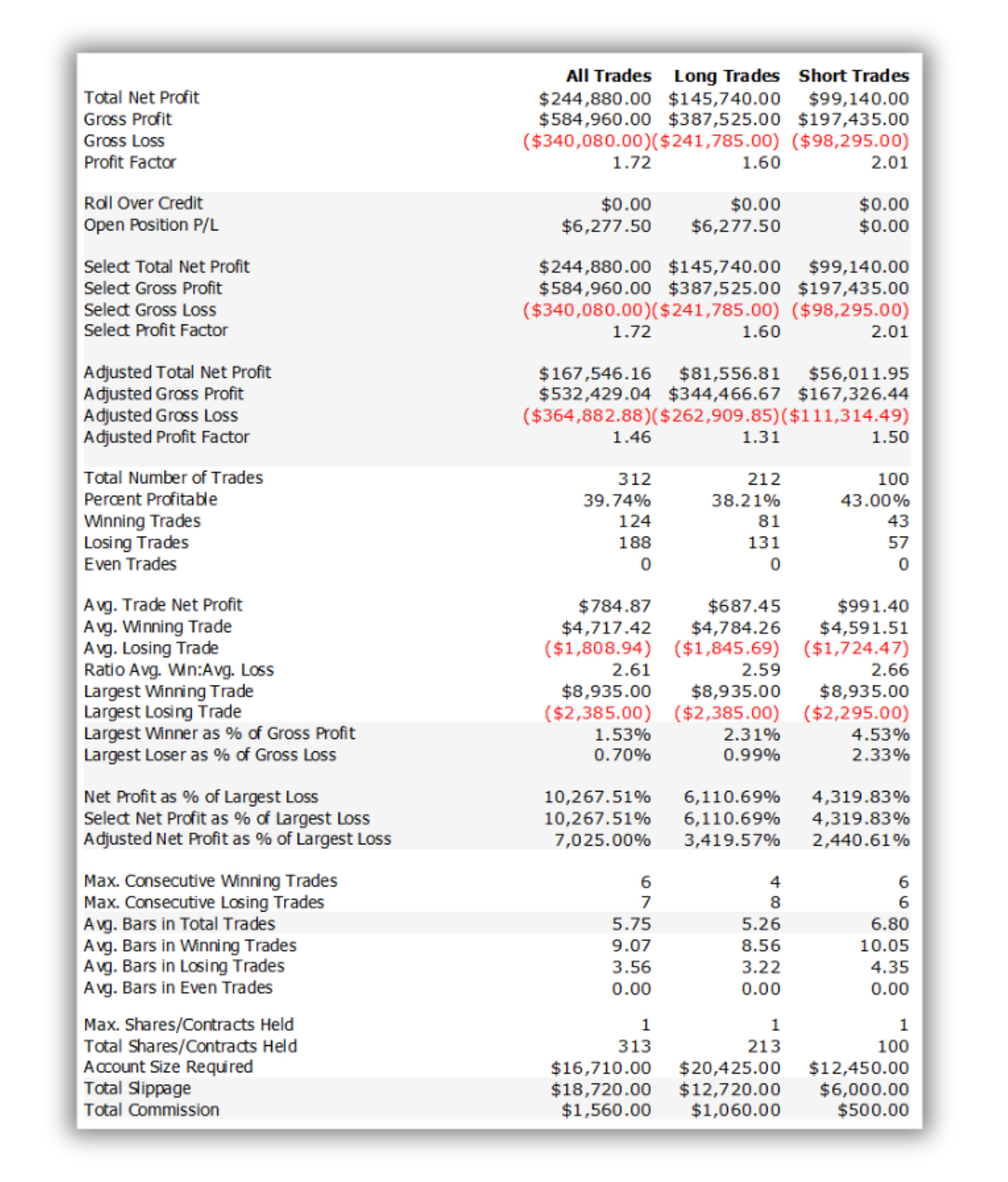 Avg Win / Avg Loss: $4,717 / $1,809 = 2.61:1