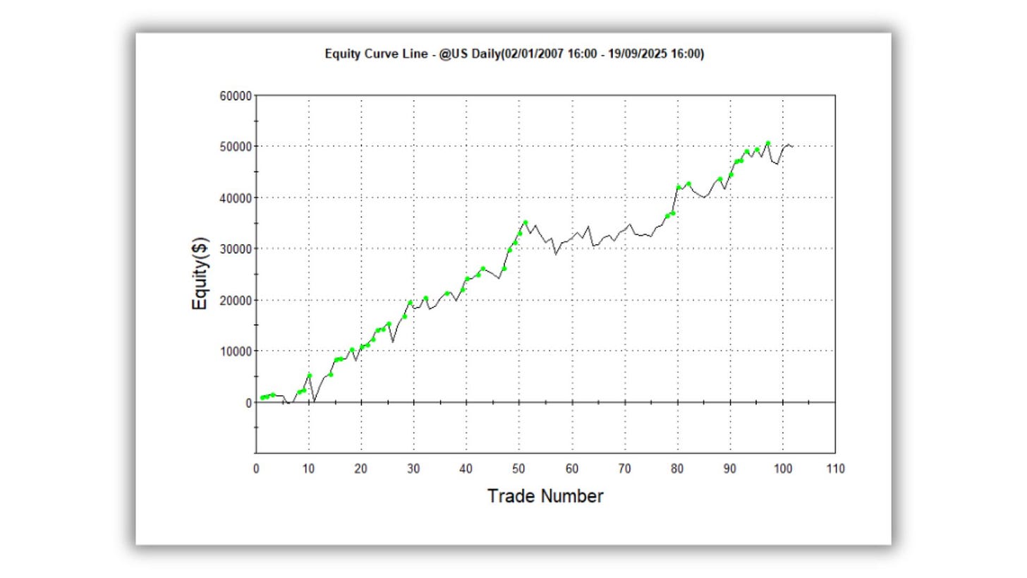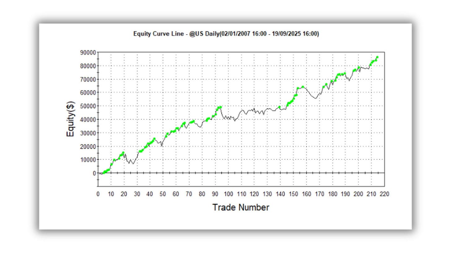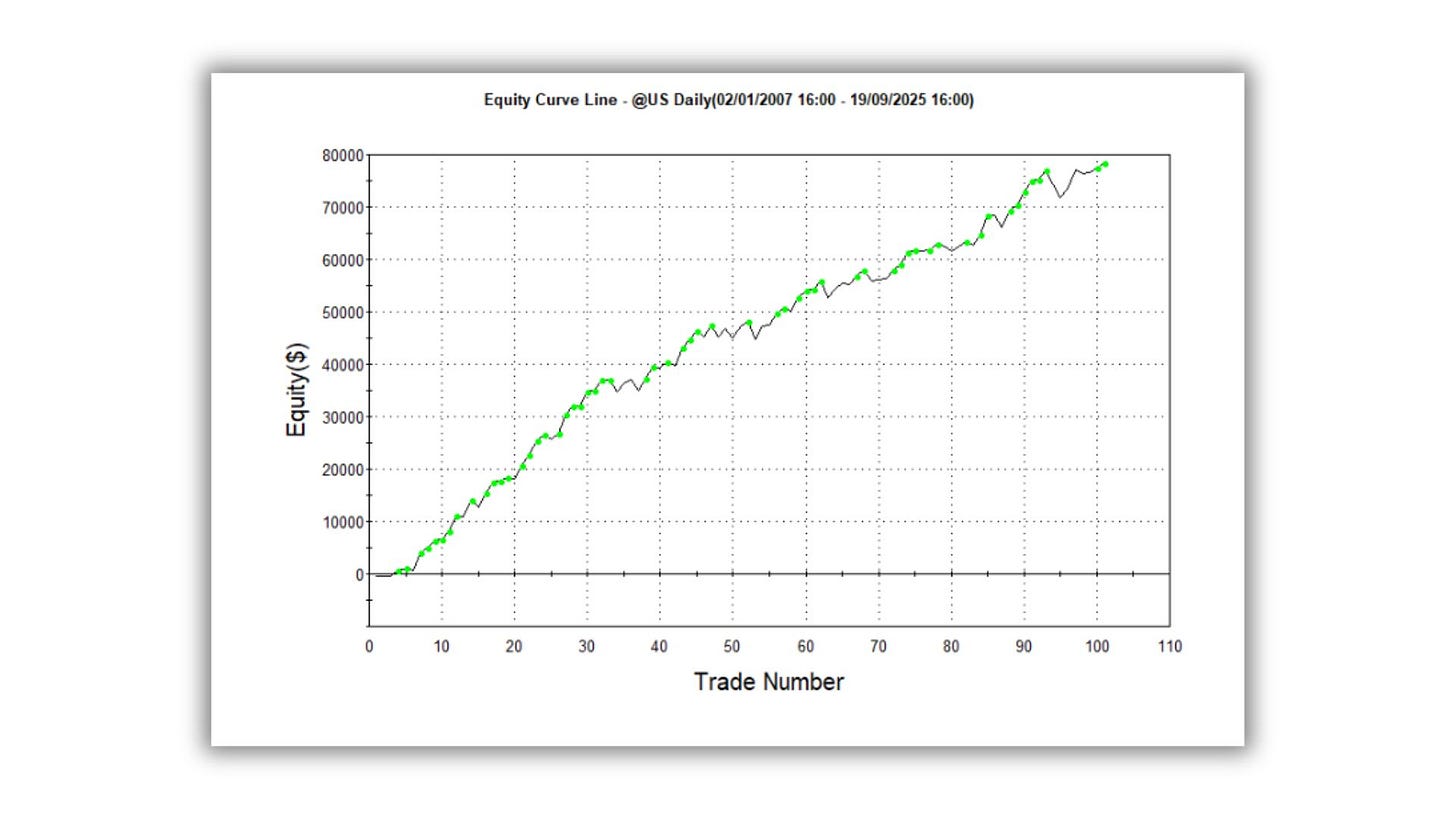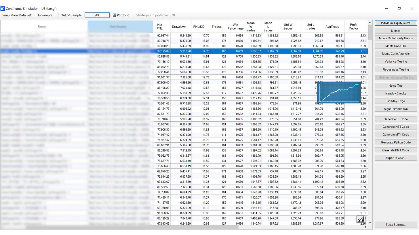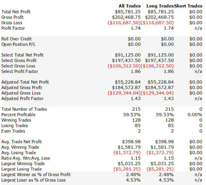 By replacing the weird condition with logical momentum filtering, I had a strategy I could actually trade (but first I’ll monitor it on a live simm account).