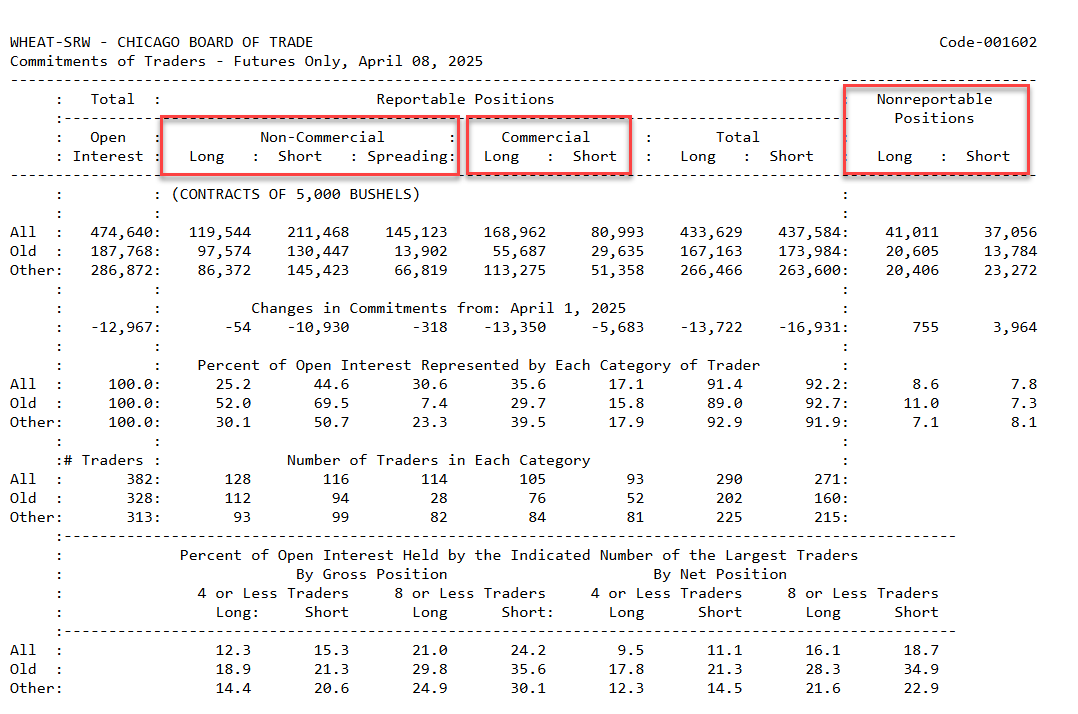 Non-Reportable: The "small fish" — traders with positions too small to be individually reported.